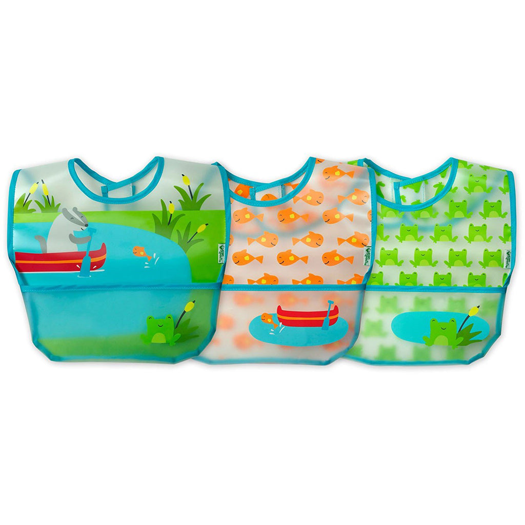 iPlay Inc., Green Sprouts, Wipe-Off Bibs, 9-18 Months, Aqua Pond Set, 3 Pack