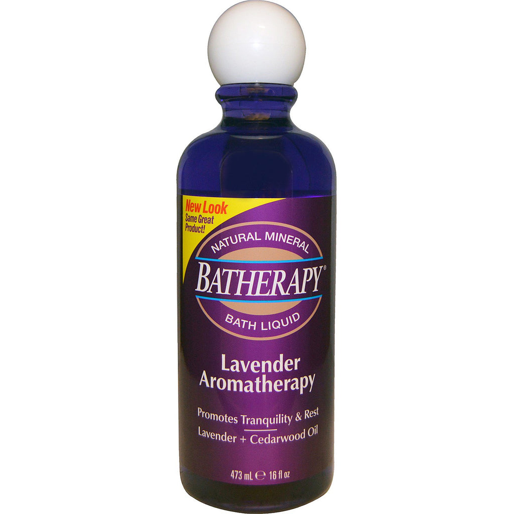 New Look Same Great Product! Promotes Tranquility & Rest Lavender + Cedarwood Oil Promotes tranquility and rest This Batherapy Lavender Aromatherapy formula helps melt away the day's tensions and induce calmness. Coupling the therapeutic properties of natural minerals and aromatherapy botanicals, including eucalyptus, it creates a serene spa bath experience that softens your skin, relaxes your mind and helps you have a good night sleep. Lavender Oil encourages deep, restful sleep. Cedarwood Oil helps calm nerves. Epsom Salt (magnesium sulfate) helps relax tense muscles.