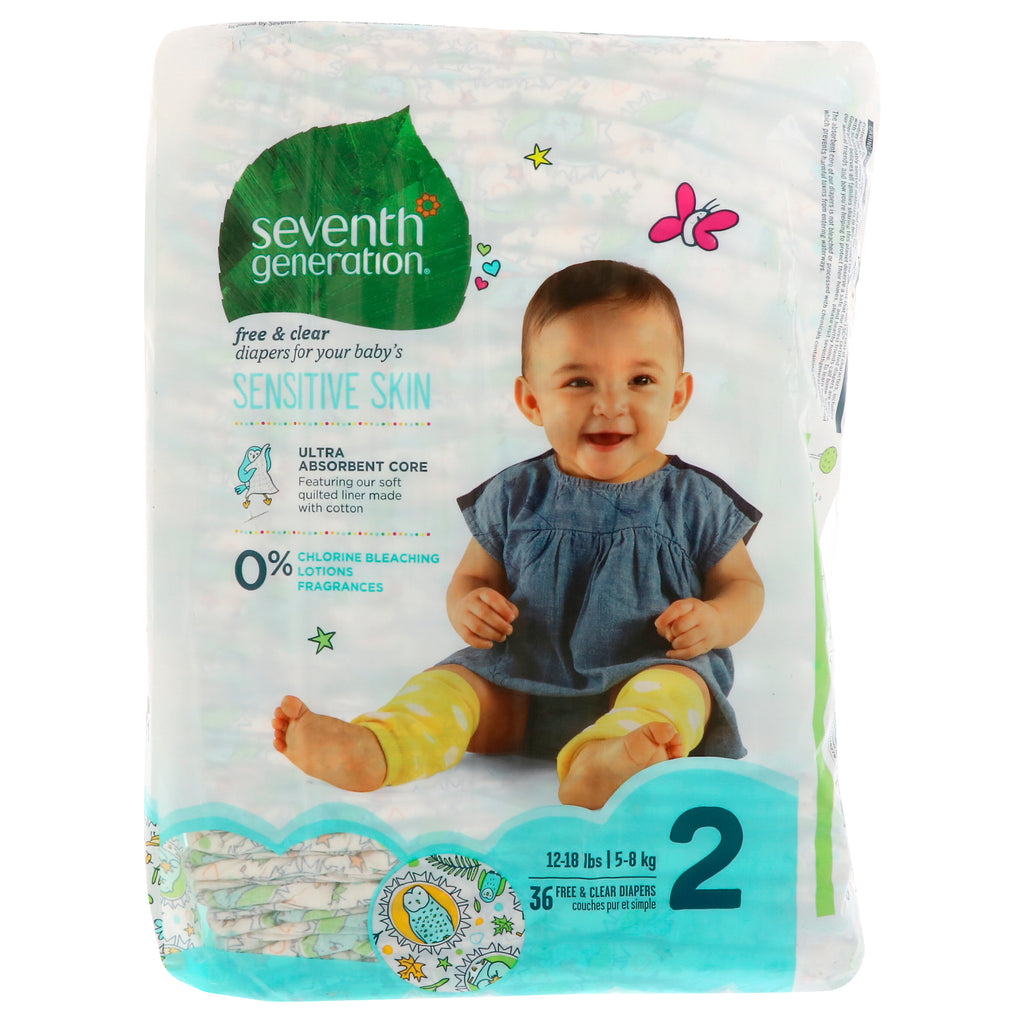 Seventh Generation, Baby, Free & Clear Diapers, Size 2, 12-18 Pounds (5-8 kg), 36 Diapers
